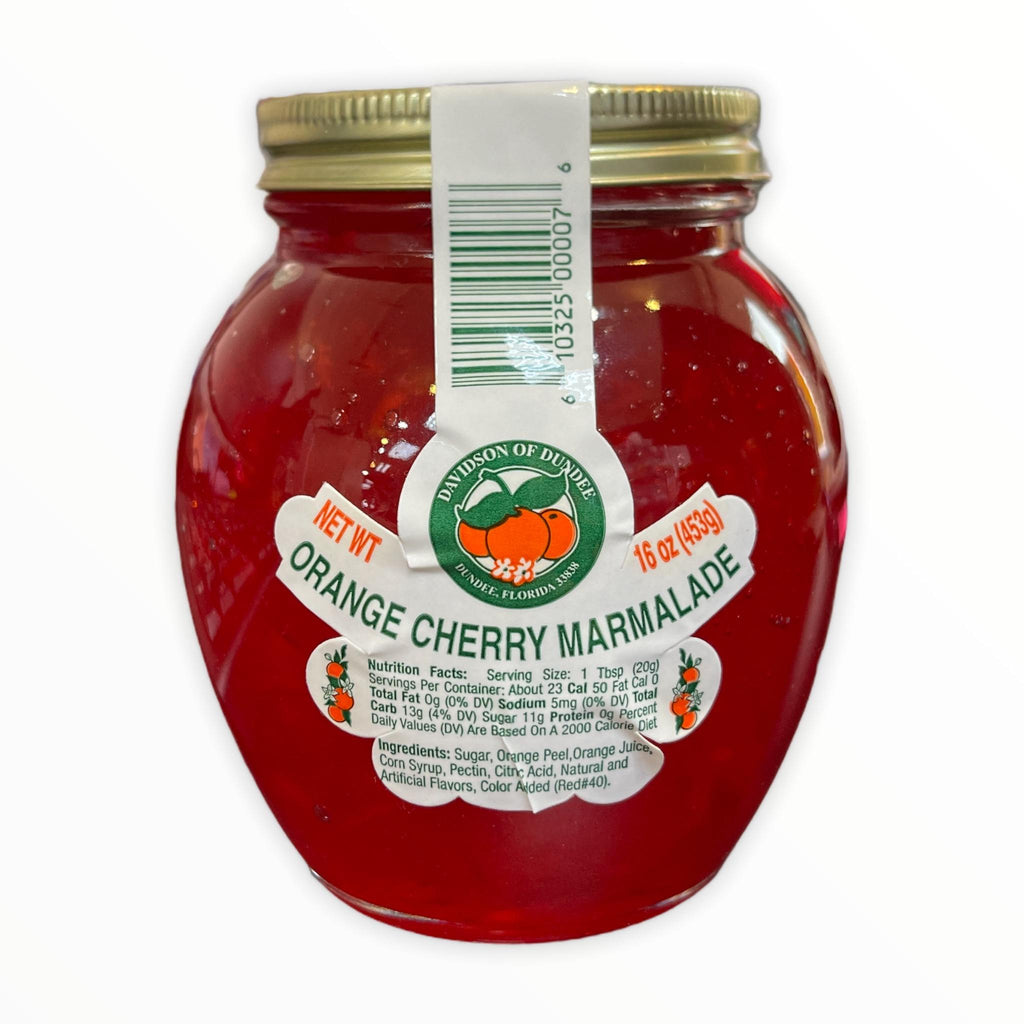 Our Dundee Florida Orange Cherry marmalade is made the old-fashioned way by Davidson of Dundee – slowly cooked in copper kettles, one batch at a time, using only the finest ingredients ; sun-ripened fruit and juices straight from the groves and pure cane sugar from the Everglades.