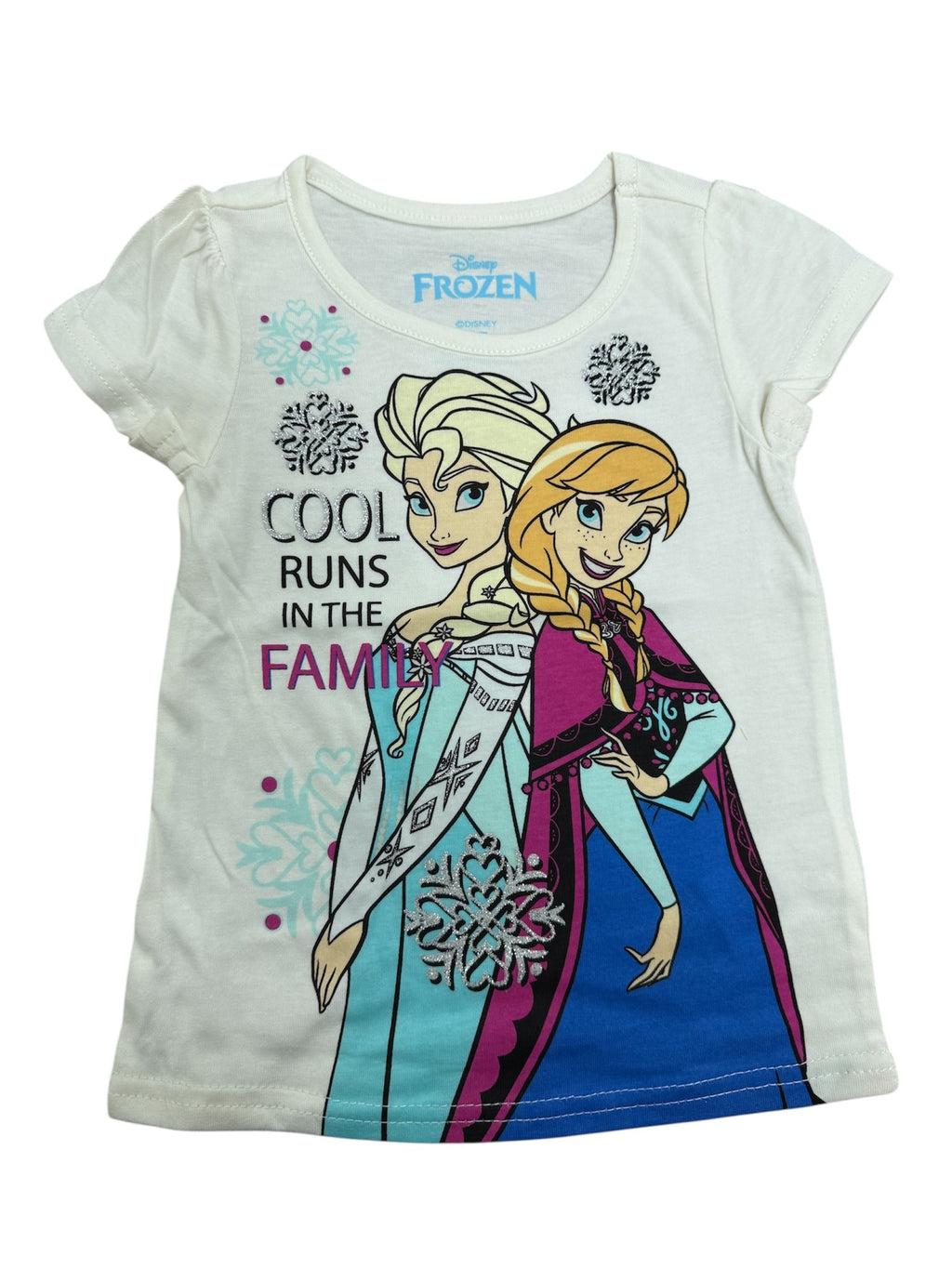 Introducing the enchanting Disney Girls Frozen "Cool Runs in the Family" T-shirt! Your little one will sparkle and shine in these delightful shirts featuring their favorite Frozen characters. Made with soft, high-quality fabric, these shirts are perfect for playtime, outings, and everything in between. Get ready to bring a touch of magic to your child's wardrobe with this charming Tee! Hurry, and let the magic begin!
