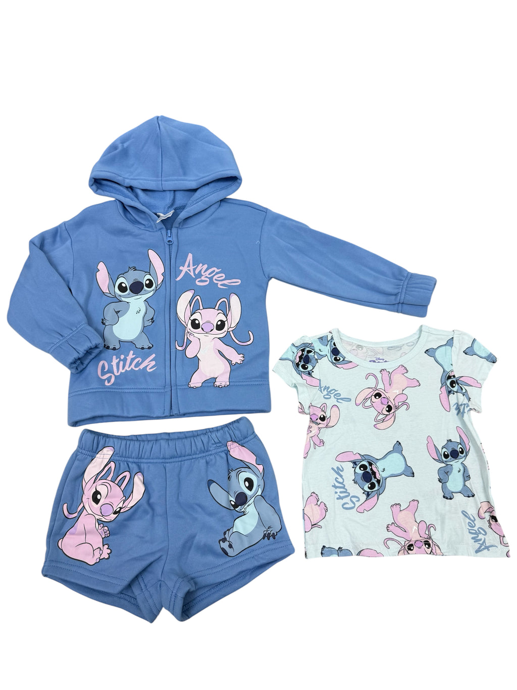 Toddler Disney Stitch & Angel 3pc Hoodie, Shirt & Shorts Set