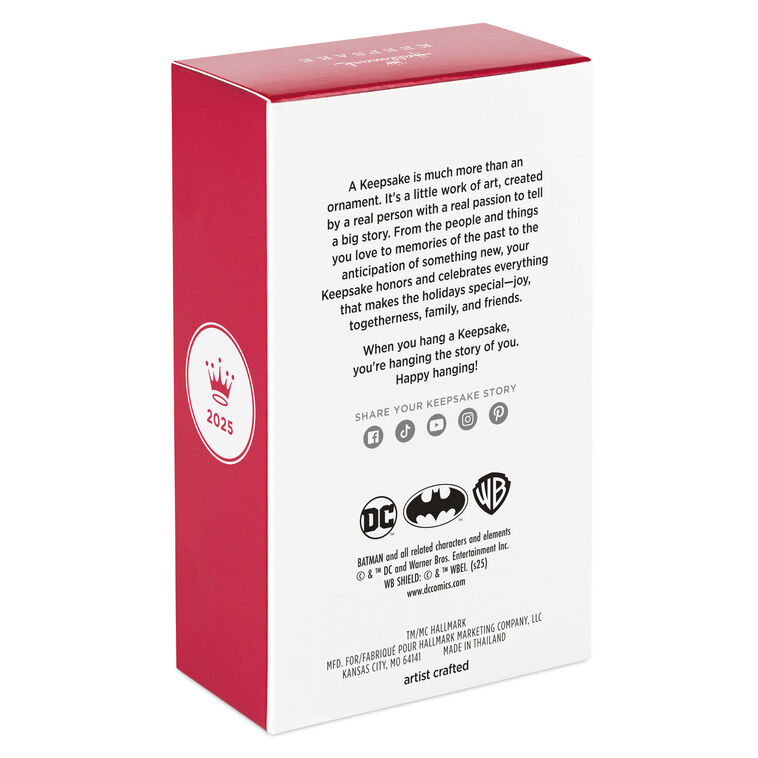 A criminal mastermind obsessed with joke- and prank-based crimes, The Joker was always outwitted by Gotham City's Dynamic Duo, Batman™ and Robin™. Fans of the 1960s classic TV series "Batman" will love to add the Clown Prince of Crime to their collection. This Christmas tree ornament features Batman's archenemy in his iconic fuchsia suit, vibrant green shirt and hair, and fiendish, blood-red grin