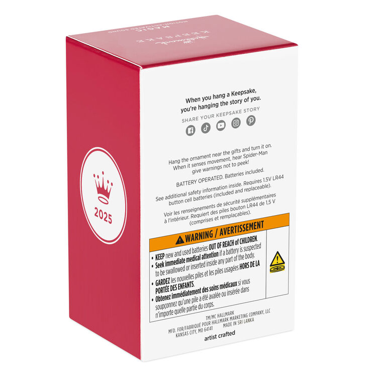 Don't worry about any present-peekers in your house with your friendly neighborhood Super Hero hanging around! Just dangle this fun Christmas tree ornament near the gifts you want to protect and turn it on. Any movement near the gifts results in warning messages from the jolly ol' Webhead Spider-Man who stands, or rather hangs, guard to keep your packages under wraps until the big day. Battery operated.