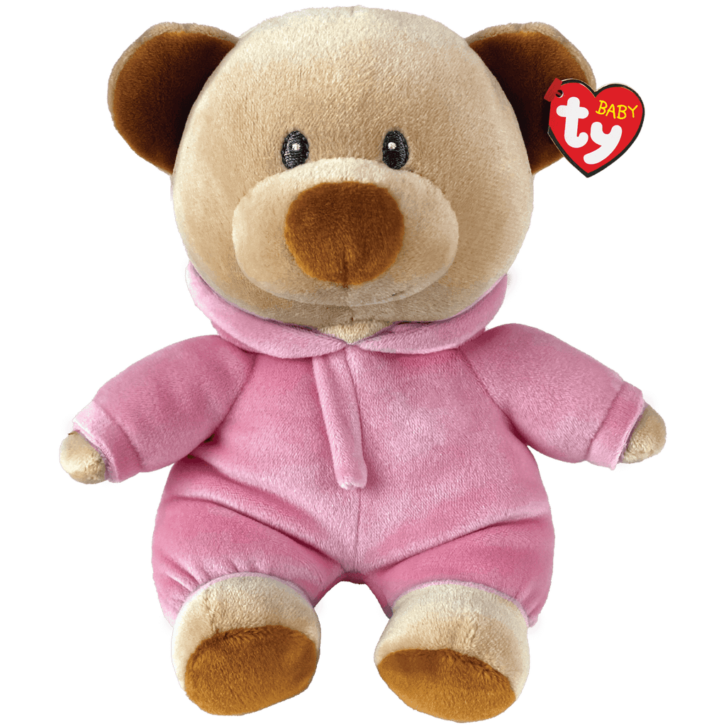 Pretty in pink Pajama Bear is the perfect companion for any newborn! So soft to the touch, this sweet bear is outfitted with a hood you can pull over Pink's head to keep her ears nice and toasty.