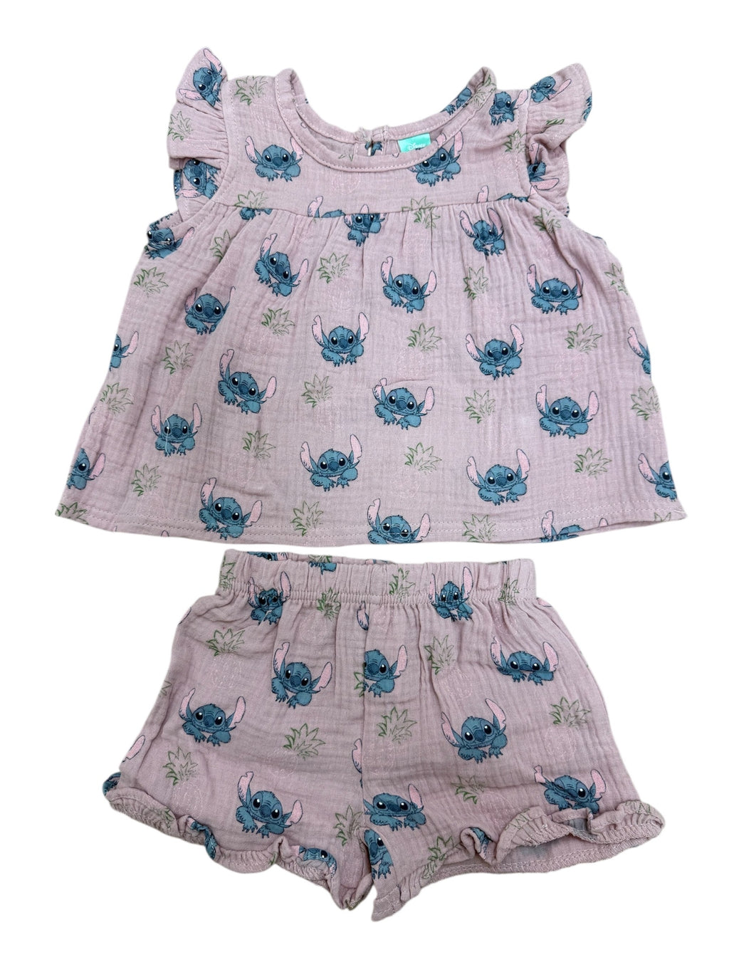 Stitch Baby Girls 2pc Tank Top Ruffle Short Set Lavender