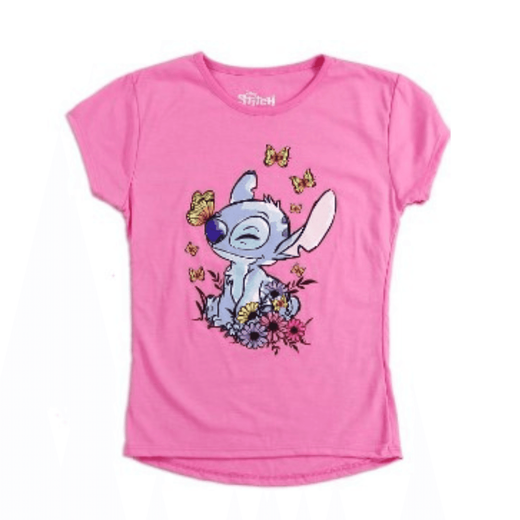 Short-sleeve tee cut from lightweight fabric with a playful Lilo & Stitch graphic.