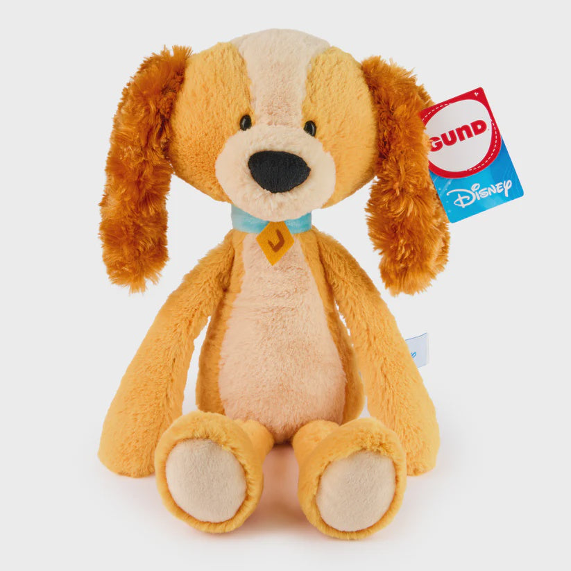 Lady, the pampered and elegant Cocker Spaniel from the classic film Lady and the Tramp, is here as a fun and floppy plush! This lovely pup features soft golden plush fur with long, floppy ears, a short, fluffy tail, large black nose, and her iconic blue dog collar. Like the rest of our Disney GUND Toothpick collection, this adorable 15” plush was crafted with our Toothpick bear’s signature slender frame and long, floppy limbs that dangle and make them oh-so-posable. These whimsical, floppy friends are sized for on-the-go play and going anywhere the adventure takes you! Surface-washable; appropriate for ages 1 and up. Ships in a protective poly bag.